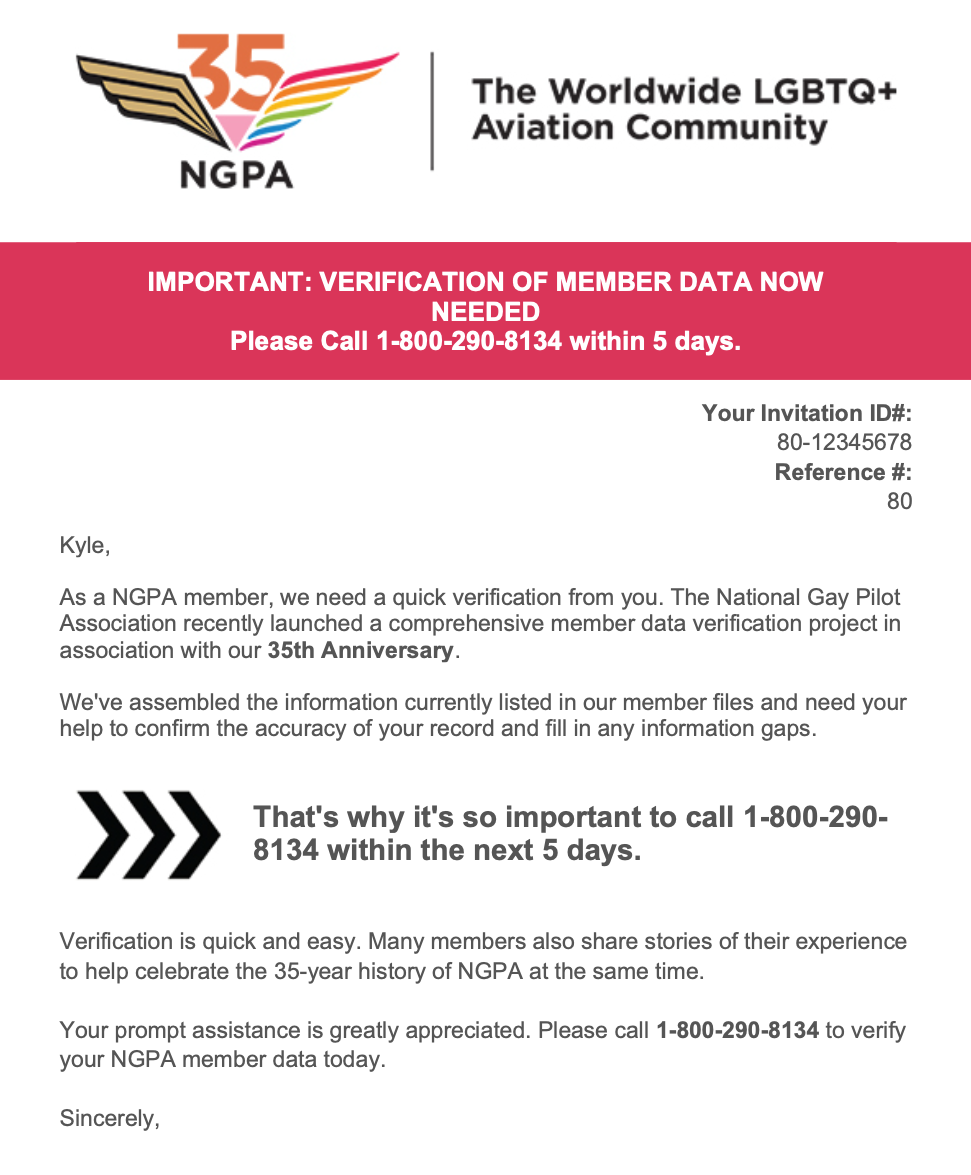 I received an email/postcard/phone call from a company asking for my personal information and a story about NGPA. Tell me more about the project.